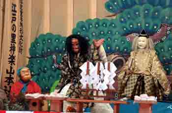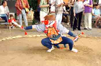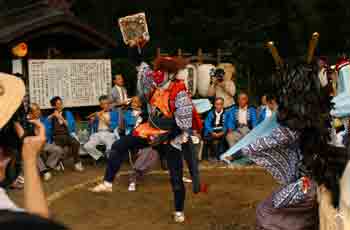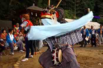| 天狗と獅子は、跳ねたりしながら激しく舞います。 | ||||||||||||||